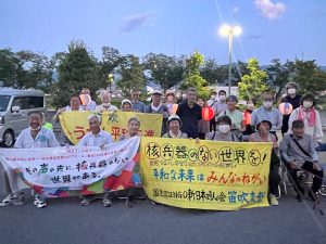 参加者からは、「地域の方にアピールする事が出来て良かった」「ちょうちんの灯が夕映えに綺麗に見えました、平和な日が続きますように」と感想が聞かれました。