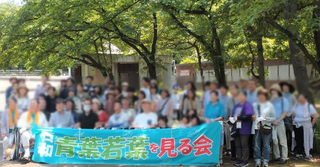 青葉若葉を見る会とは、 さまざまな疾病や障害などで外出の機会が少ない方たちと一緒に、青葉若葉の美しい時期に外出して楽しい時間を過そうという企画です。